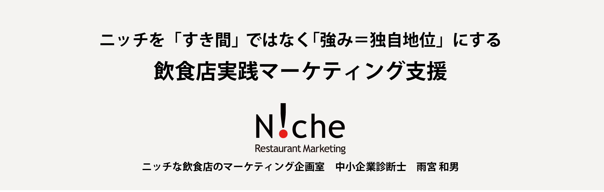 ニッチとは「すき間」のことではありません。独自の地位、ポジションのことです。独自地位なら競争の必要がありません。ニッチな飲食店とは小さくても独自の価値をもつ飲食店ビジネス。ニッチな飲食店を研究し分析し、成功のためのマーケティング施策を提言します。